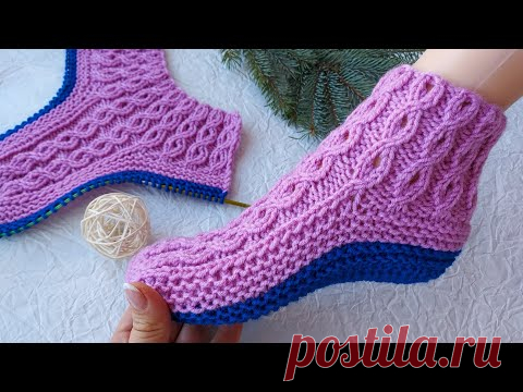 тапочки спицами на двух спицах