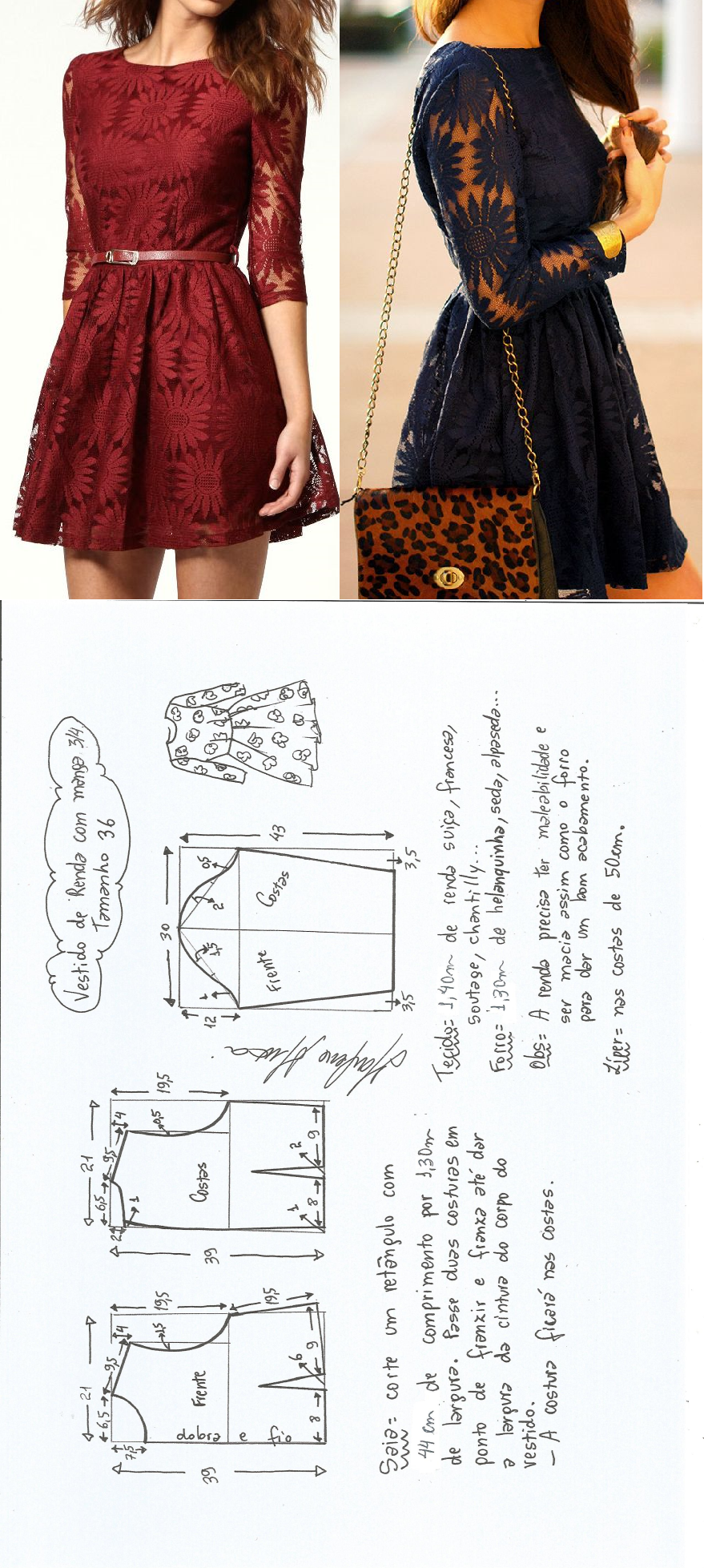Vestido meia estação de renda e manga 3/4 - Marlene Mukai