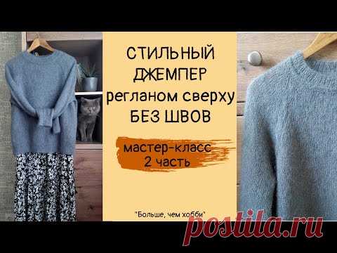 Стильный джемпер регланом сверху без швов (из кид-мохера на шелке). 2 ЧАСТЬ.