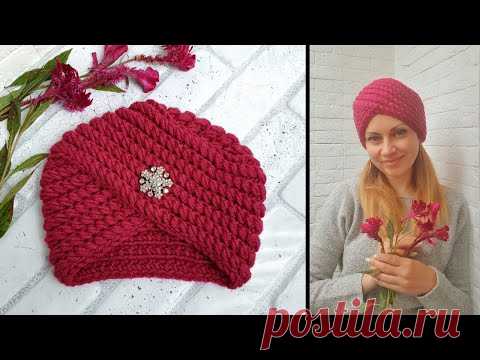 МК Женская шапка чалма тюрбан спицами. Связать просто и быстро. Подойдет для новичков