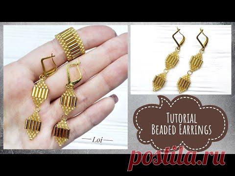 Мастер-класс: Серьги из стекляруса и бисера | Ромбики из бисера | Tutorial - Beaded Earrings