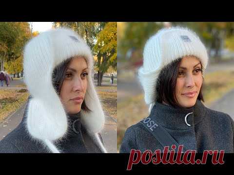 Шапка ушанка спицами и кеттлевкой #ушанка_сметанка