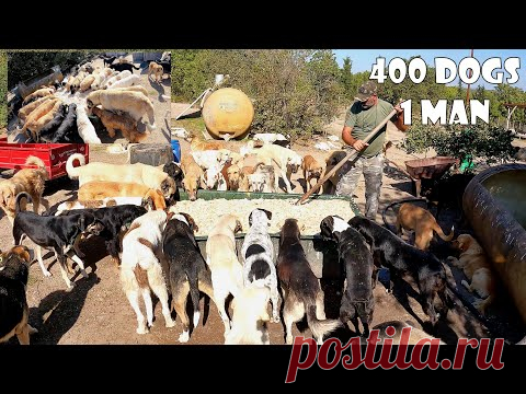 65-летний мужчина, живущий с 400 бездомными собаками, которых он спас и усыновил.