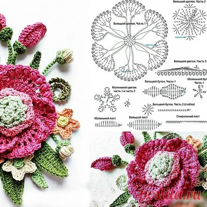 "Цветы крючком!": подборка цветочков со схемами, как в мотиве, так и отдельные для декора | Рукоделие в жизнь | Павлычева Ирина | Дзен