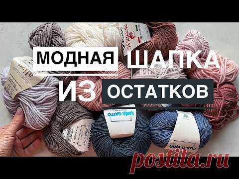 Вяжем модную шапку из остатков пряжи! Подробный мастер-класс!