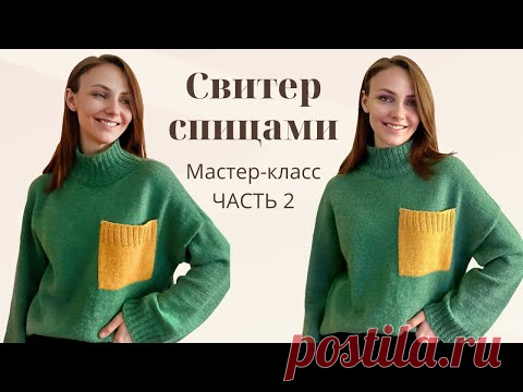 Мастер-класс стильный свитер спицами с высоким воротником / Оверсайз свитер / Часть 2