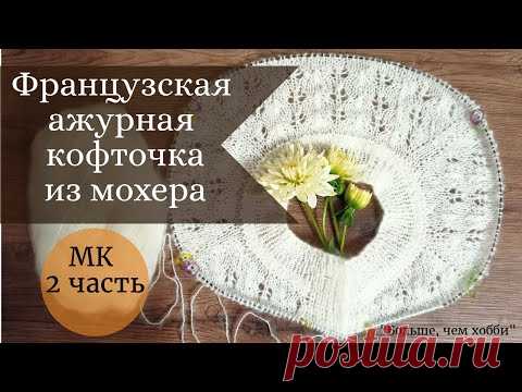 Ажурная французская кофточка спицами. МК 2 часть. Реглан с ростком.