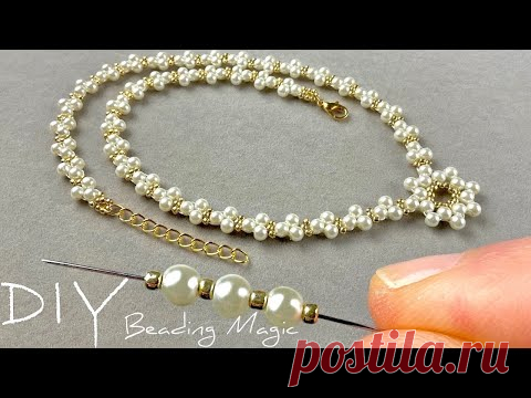 Жемчужное ожерелье с бисером своими руками | Мастер-класс Как сделать украшение из жемчуга и бисера