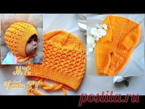Шапочка-чепчик спицами для малыша. Мастер-класс. В комплект к комбинезончику "Бархатная осень"