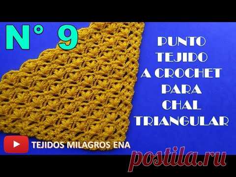 Chal N° 9 tejido a crochet en Punto FLORES PEQUEÑAS para chales en V, triangulares o en punta
