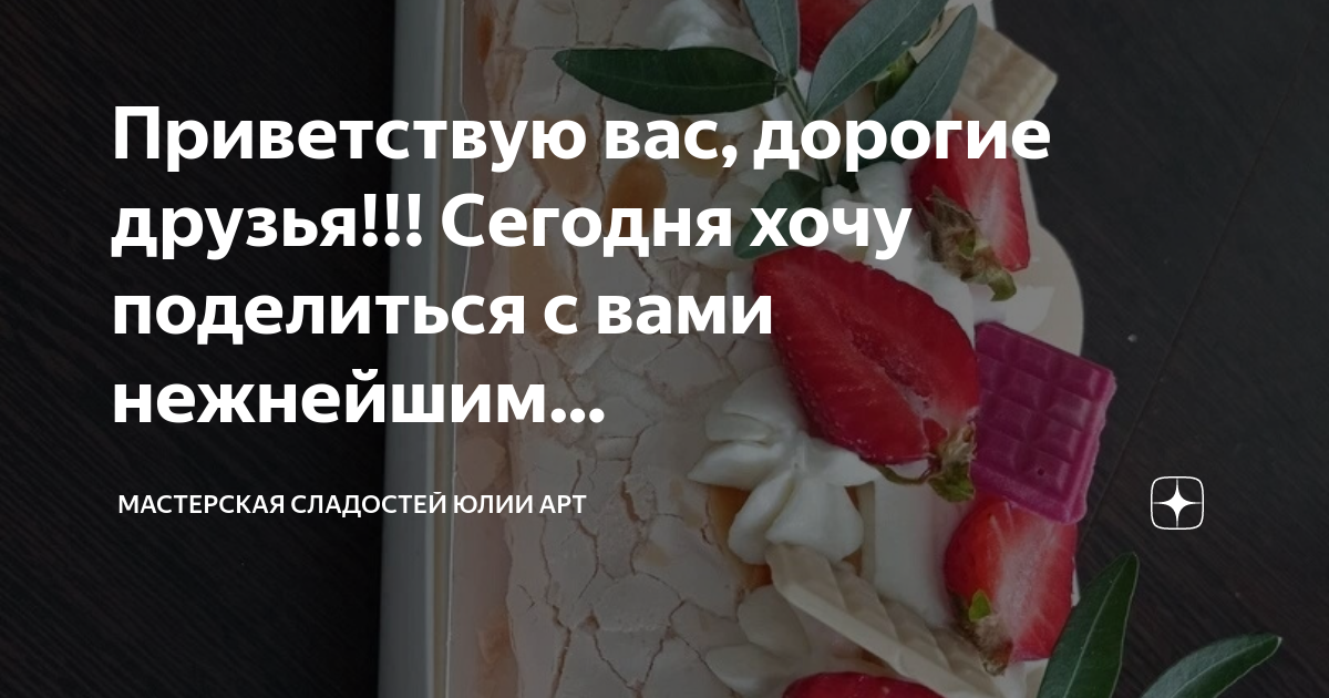 МАСТЕРСКАЯ СЛАДОСТЕЙ Юлии Арт Пост автора «МАСТЕРСКАЯ СЛАДОСТЕЙ Юлии Арт» в Дзене ✍: Приветствую вас, дорогие друзья!!! Сегодня хочу поделиться с вами нежнейшим воздушным, как облачко, десертом. Меренговый рулет, он божественный!!