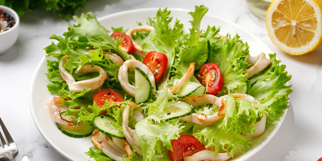 20 простых и очень вкусных салатов с кальмарами - Лайфхакер По этим рецептам вы сможете приготовить вкуснейший салат с кальмарами и огурцами, креветками, сыром, корейской морковью или грибами.