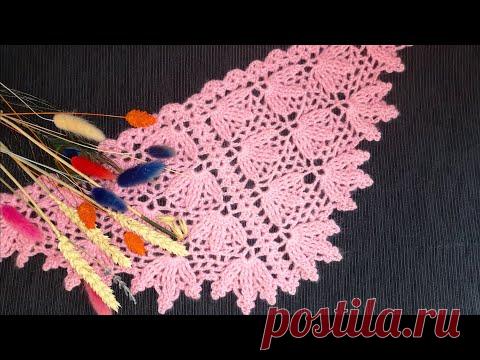 Кайма к шали Трилистник//Шаль крючком//Бактус крючком