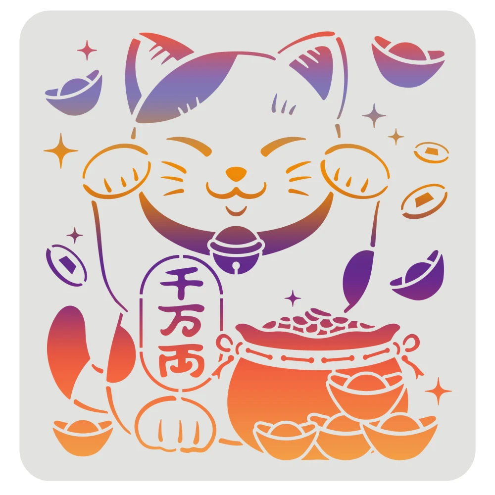 Plantilla de gato, plantilla de dibujo de gato de la suerte, plantillas reutilizables con tema de gato de la suerte para pintar en la pared, suelo de tela de papel de madera - AliExpress