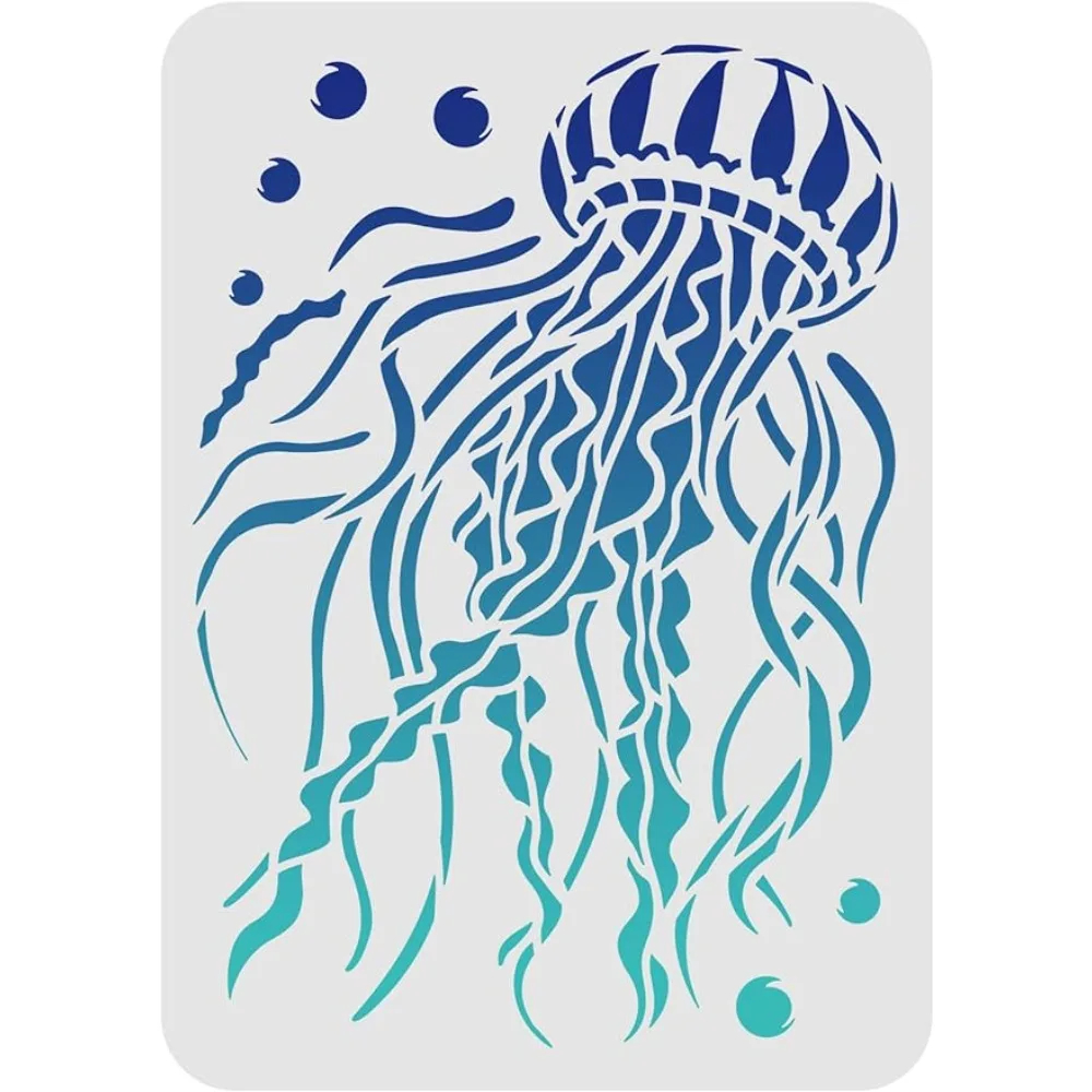 Plantilla de medusas, plantilla de dibujo de medusas de 11,7x8,3 pulgadas, plantillas reutilizables de peces de arrecife costero, plantilla de criaturas marinas, tema del océano - AliExpress
