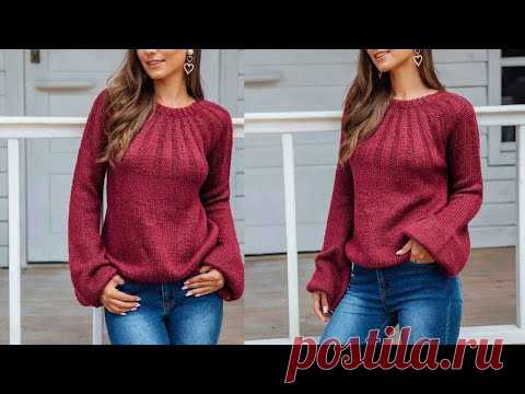 ВОЛШЕБНЫЙ 😍 свитер спицами на круглой кокетке / Расчеты на 4 размера