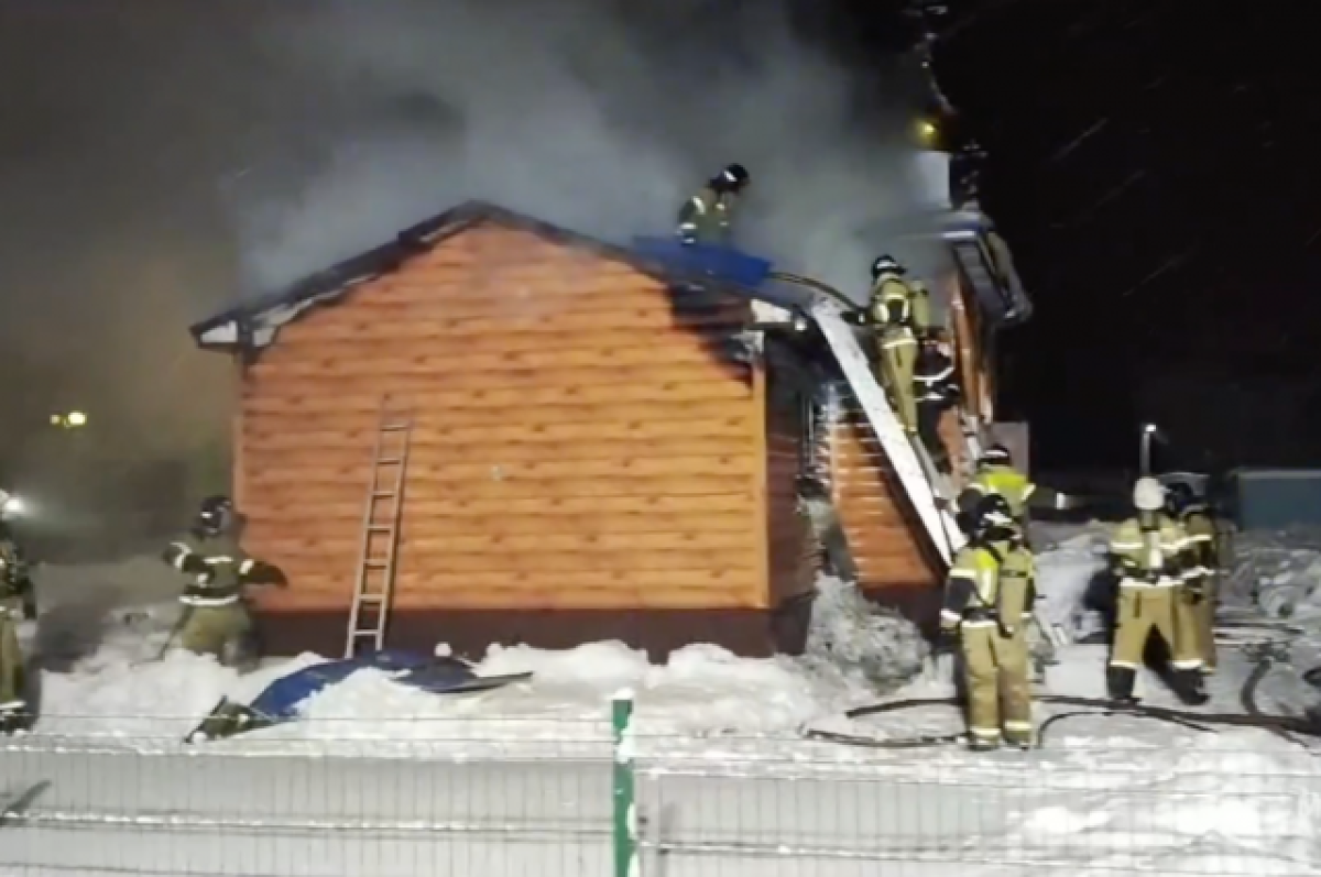 Огнеборцы тушат пожар в деревянном храме в Мордовии. Пламя охватило 128 квадратных метров деревянной церкви.
