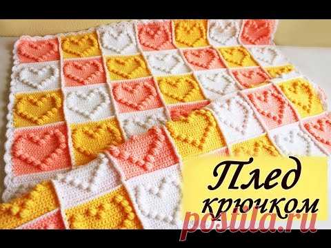 Детский ПЛЕД КРЮЧКОМ с сердечками (1 часть) Baby blanket with subtitles