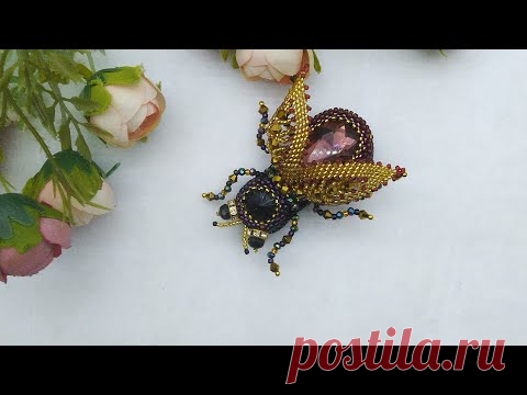 Брошь. Жук с золотыми крылышками.Подробный мастер класс. #бисероплетение #брошь #мастеркласс