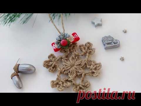 Вязаная СНЕЖИНКА из джута крючком. Новогодний декор, ёлочная игрушка своими руками. Christmas DIY.