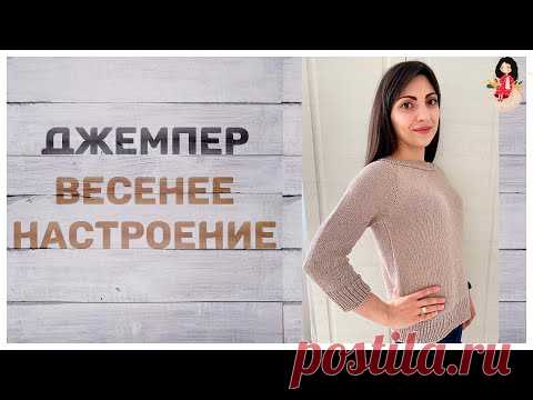 Джемпер спицами женский "Весеннее настроение". Вязание реглан сверху без шва.