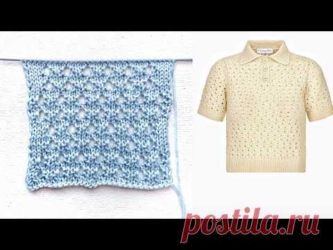 Ажурный узор рубашки поло от Диор / Лёгкий узор спицами
