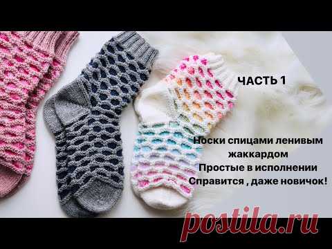 Част 1 //НОСКИ СПИЦАМИ// ЛЕНИВЫЙ ЖАККАРД//ПЯТКА БУМЕРАНГ//КАК СВЯЗАТЬ НОСКИ ДЛЯ ВЗРОСЛЫХ// ПЯТКА