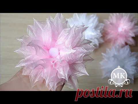 Пышные резинки для волос из органзы. Канзаши. / МК. DIY. Kanzashi. Scrunchy.