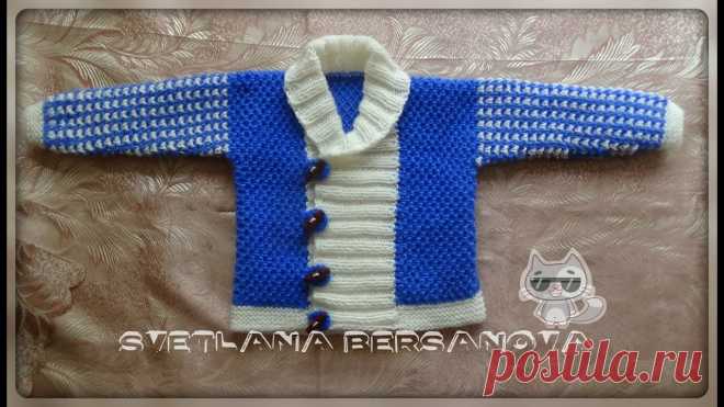 Вяжем спицами. Курточка для мальчика Курточка связана примерно на 1-1,5 года. Вам понадобится примерно 350 гр. пряжи с толщиной нити 130 м. на 100 гр. , спицы №4 Вяжем от одного рукава до друго...