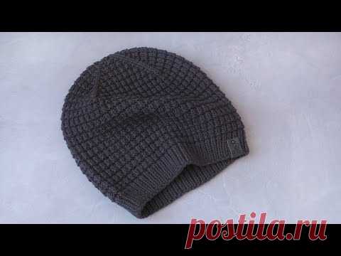 Мужская шапка спицами. Мастер класс + схема узора.