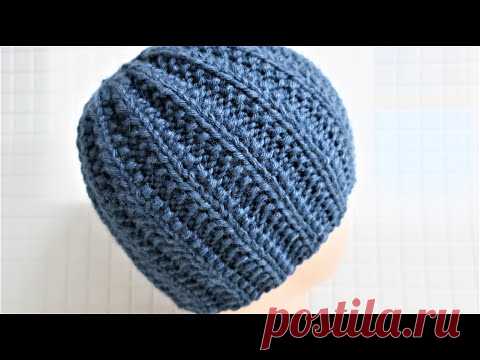 Шапка мужская спицами за 1 час. Подробный мастер класс