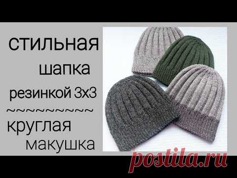 Стильная шапка резинкой 3х3 с круглой макушкой/мои расчеты