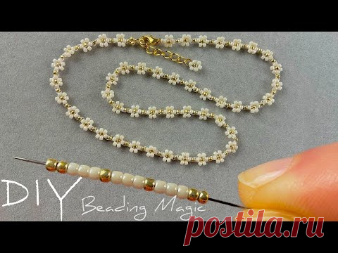 Простое колье из бисера с ромашками: Пошаговое руководство по созданию цветочного ожерелья из бисера