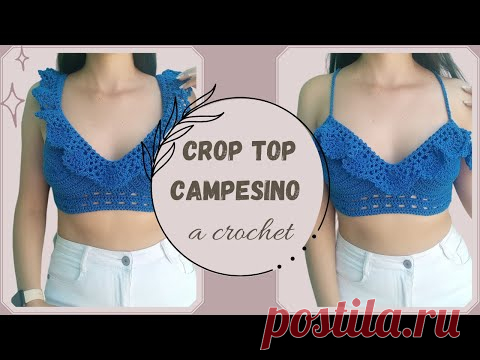 Укороченный топ-крестьянка крючком всех размеров!✨