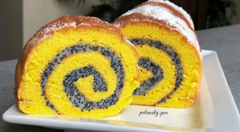 Бісквітний рулет з маковою начинкою на основі манки. • Бісквітний рулет з маковою начинкою, маковий рулет, бісквітний рулет з маком, як скрутити бісквіт в рулет, смачна начинка для рулета.