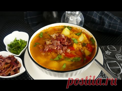 Чечевичная похлебка из красной чечевицы со шкварками! Чечевичный суп за 30 минут!