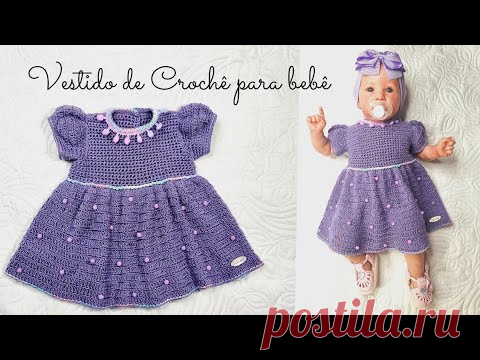 Vestido de Crochê para bebê/Tamanho 1 mês - Orientação para tamanhos até 1 ano na descrição.