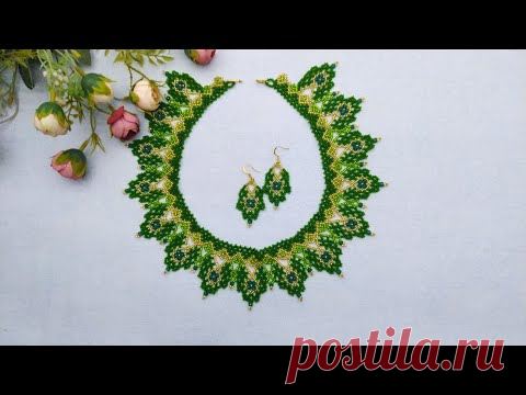 Колье "ДЫХАНИЕ ВЕСНЫ" Ажурная сетка из цветного бисера. #бисероплетение #бисернаясетка #мастеркласс