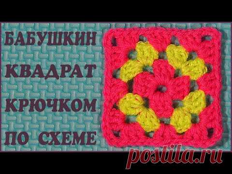 Бабушкин квадрат крючком по схеме. Читаем схему и вяжем квадрат крючком.