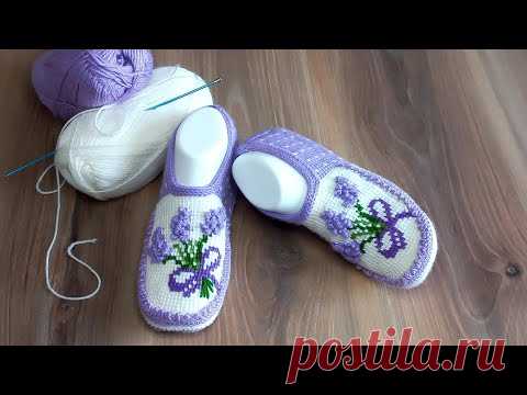 Тапочки "Весенний букетик".💐 тунисское вязание. часть 1.