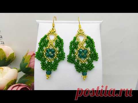 СЕРЬГИ к колье дыхание весны. #бисероплетение #мастеркласс #серьги