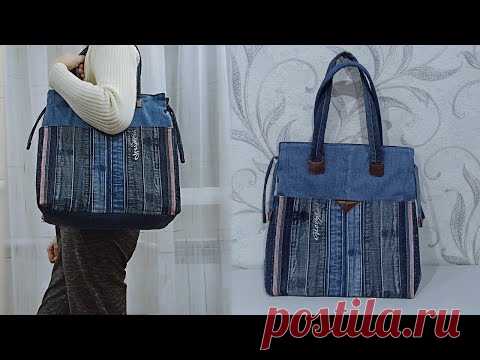 Джинсовые переделки. Шью большую простую сумку на каждый день удобную в использовании. Upcycling.