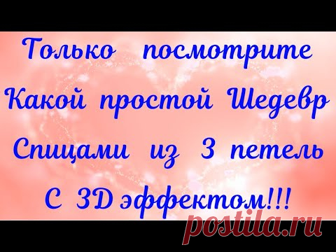 ПОСМОТРИТЕ КАКОЙ ПРОСТОЙ ШЕДЕВР СПИЦАМИ ИЗ 3 ПЕТЕЛЬ С 3D ЭФФЕКТОМ