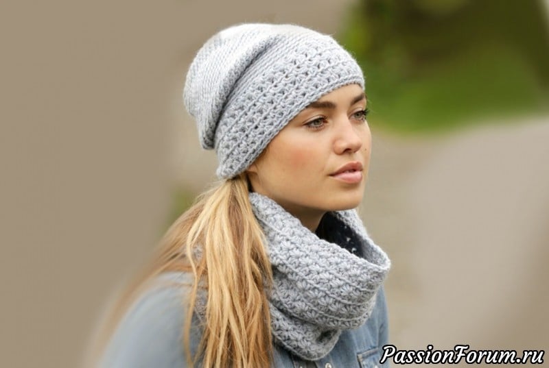 Шапка и снуд «Холодная королева» | Вязаные крючком аксессуары Шерстяная нить пряжи, довольно объёмная, позволяет сделать рисунок вязки выразительным и интересным. Узор называется «Звёздочка», он достаточно плотный и декоративный, с раппортом в 2 круга. Этим узором полностью связан снуд. На шапке он используется в виде отделки, только в...