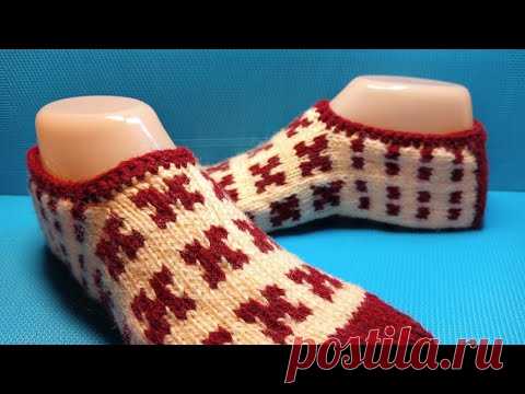#961 🌞 ТАПОЧКИ СПИЦАМИ ОТ МЫСКА / СЛЕДКИ С ОРНАМЕНТОМ.✅