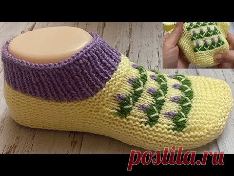 НОВИНКА 2024 !!! Тапочки-следки на двух спицах без швов // patik modelleri