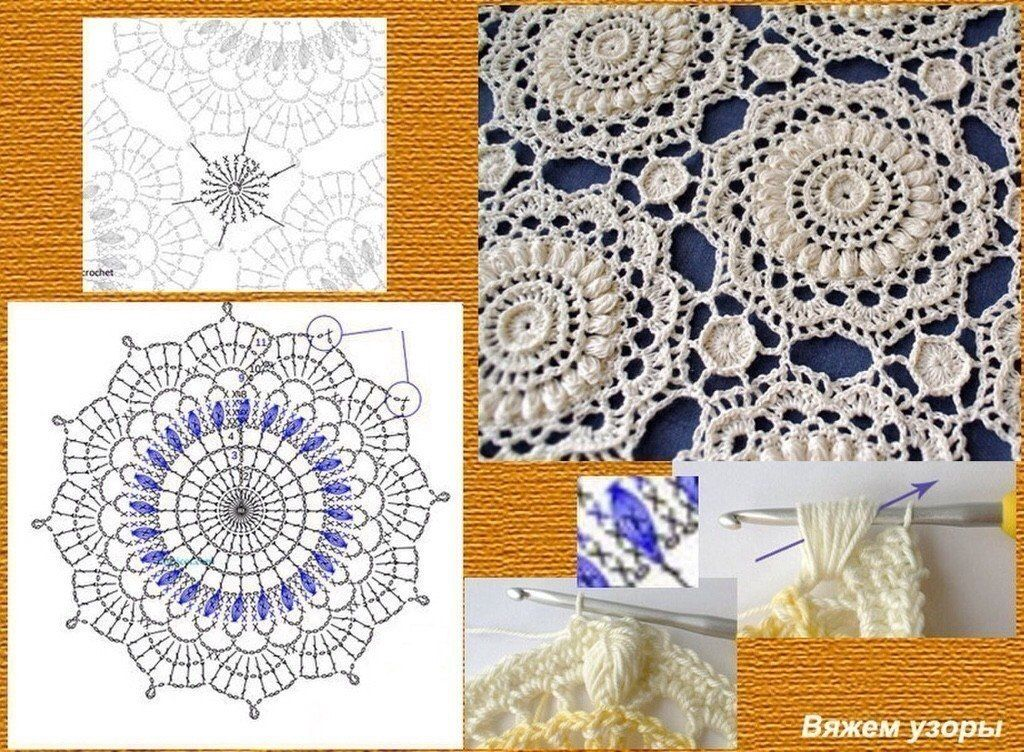 Потрясающие идеи для вязания крючком: салфетки и скатерти из мотивов со схемами | Вяжу ручками-крючками| Виктория Битарова | Дзен