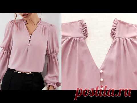 Советы и рекомендации по шитью и секреты пошива блузки с рюшами на полупуговицах.