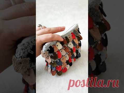 Вязание крючком с кожаными пайетками#вязаниекрючком #косметичкакрючком#сумка #сумкасвоимируками