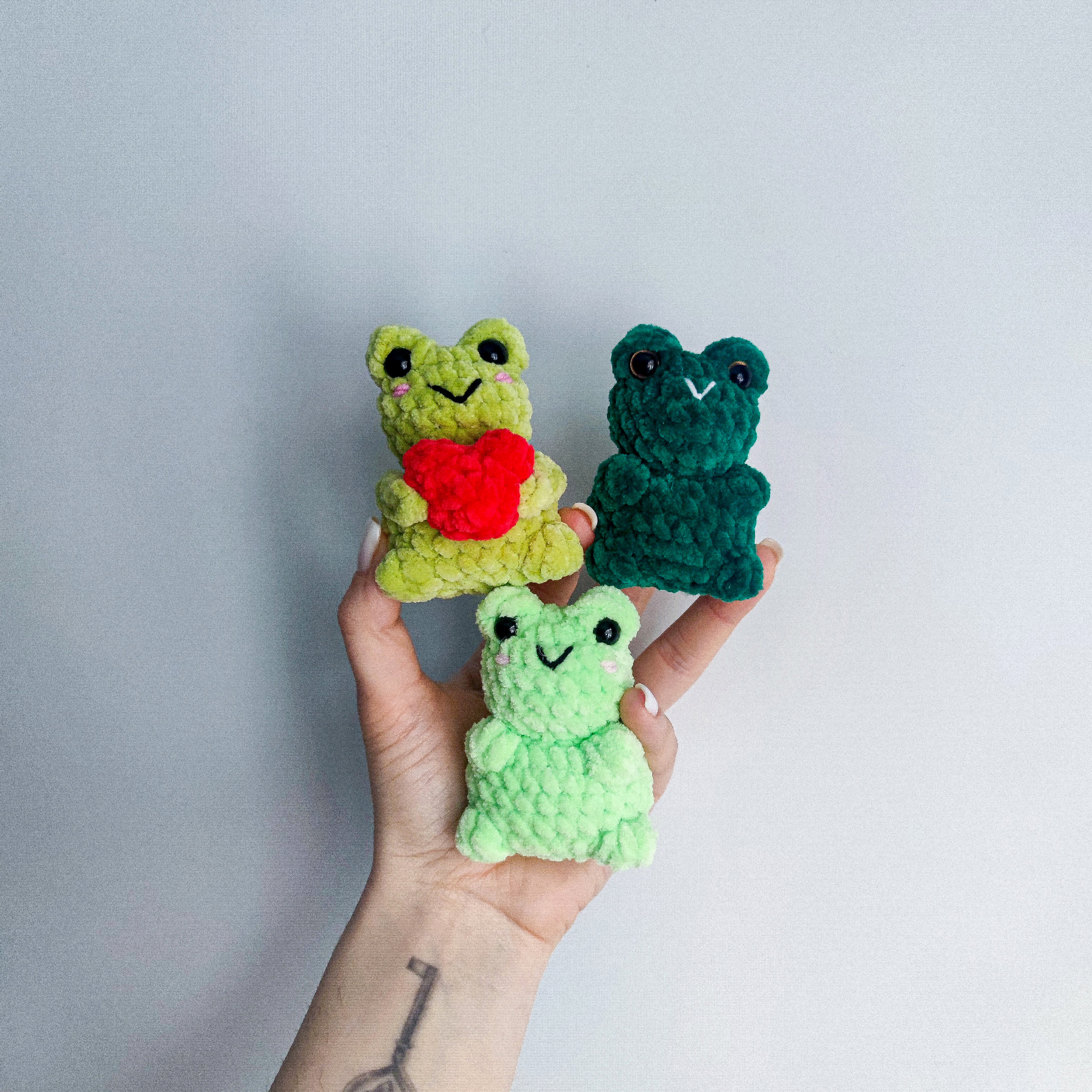 PDF Лягушка крючком. FREE crochet pattern; Аmigurumi toy patterns. Амигуруми схемы и описания на русском. Вязаные игрушки и поделки своими руками #amimore - маленький лягушонок из плюшевой пряжи, плюшевая лягушка с сердечком.